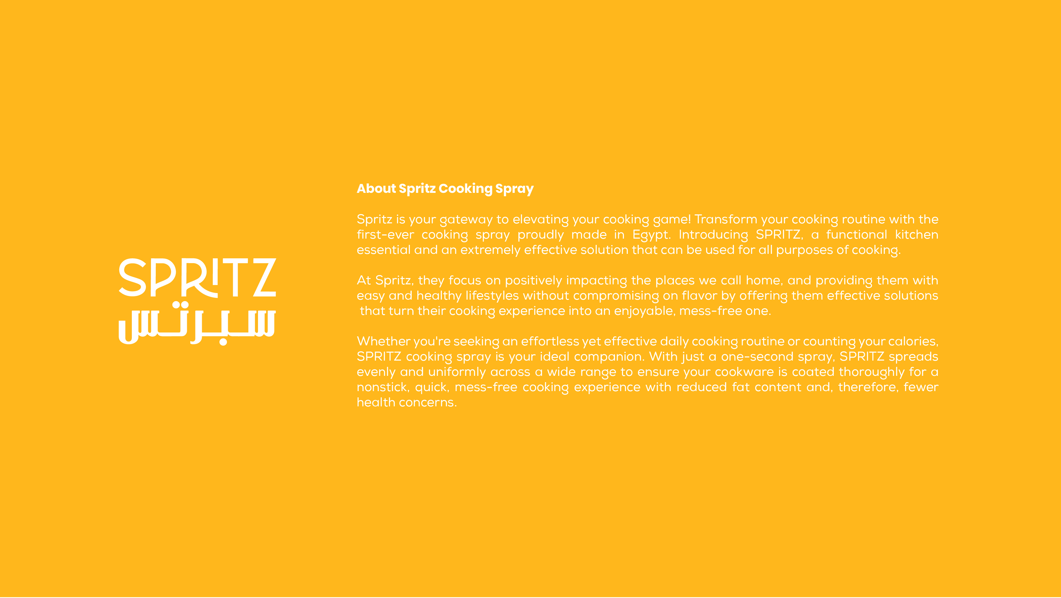 Spritz is your gateway to elevating your cooking game! Transform your cooking routine with the first-ever cooking spray proudly made in Egypt. Introducing SPRITZ, a functional kitchen essential and an extremely effective solution that can be used for all purposes of cooking.